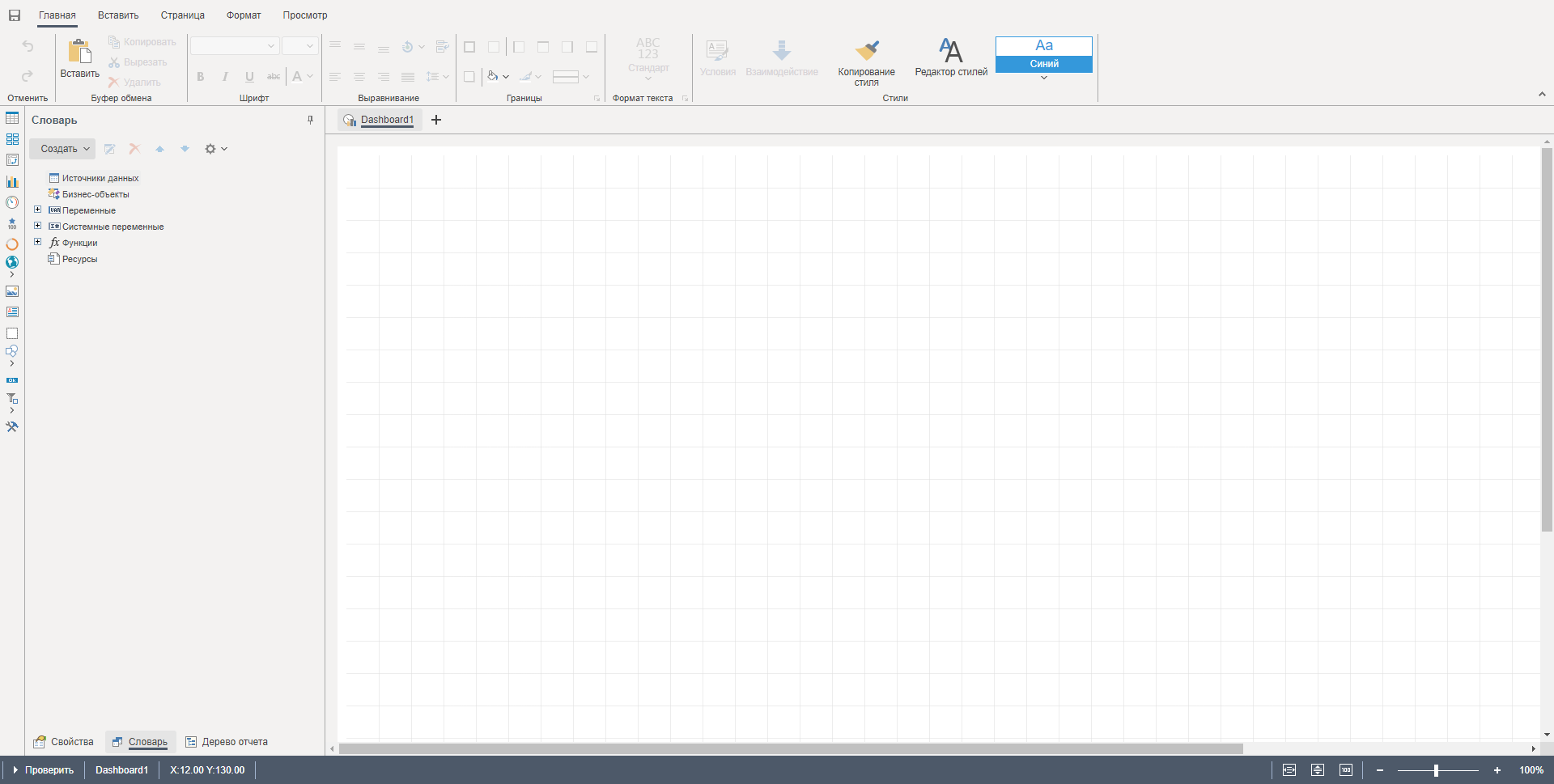 После чего откроется вкладка с дизайнером отчетов, где следует произвести необходимые настройки.