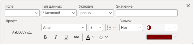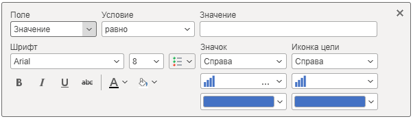 Панель предварительного просмотра условного форматирования значения, при выполнении условия.