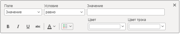 Для каждого нового условия необходимо определить параметры его применения и настройки оформления. Настройки оформления будут применены к значениям индикатора, если условие выполниться.