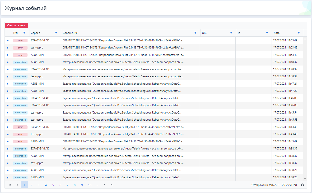 Следует отметить, что при работе может возникнуть ситуация, когда в журнале событий будут отображаться локальные IP адреса пользователей вместо реальных.