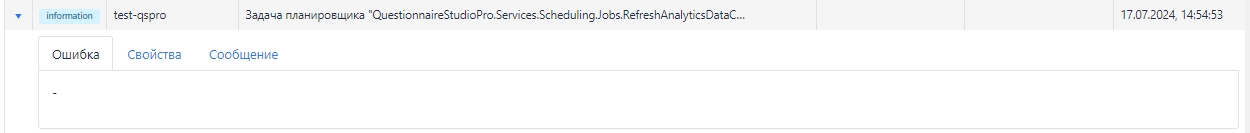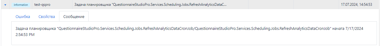 Для просмотра сообщения о событии / ошибке следует перейти во вкладку Сообщение