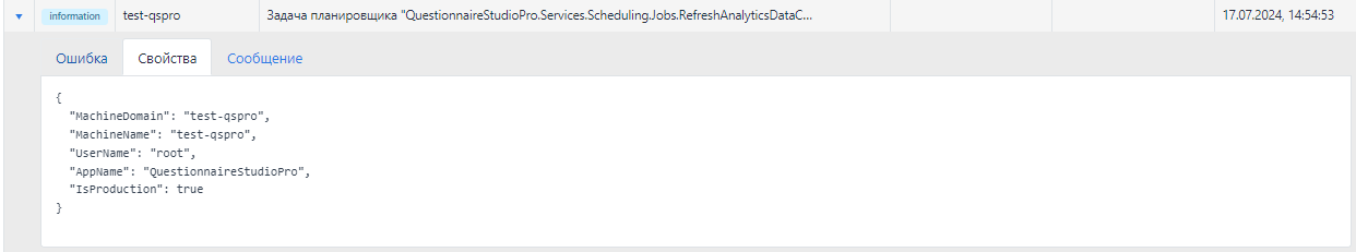 Для просмотра свойств события / ошибки доступна вкладка Свойства