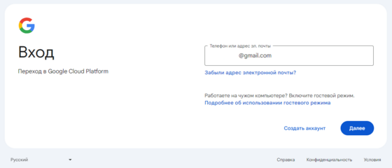 Скопировать адрес электронной почты созданного сервисного аккаунта, можно в JSON-файле, который был скачан ранее.