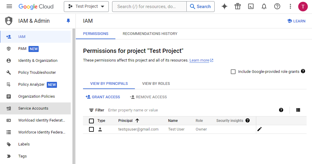 Следующим шагом необходимо с помощью бокового меню Navigation Menu перейти к пункту IAM & Admin