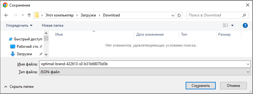 После следует сохранить JSON-файл в удобном для вас месте на вашем компьютере, используя стандартную файловую систему