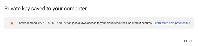 И закрыть окно, информирующее об успешном сохранении ключа на ваш компьютер, нажав CLOSE