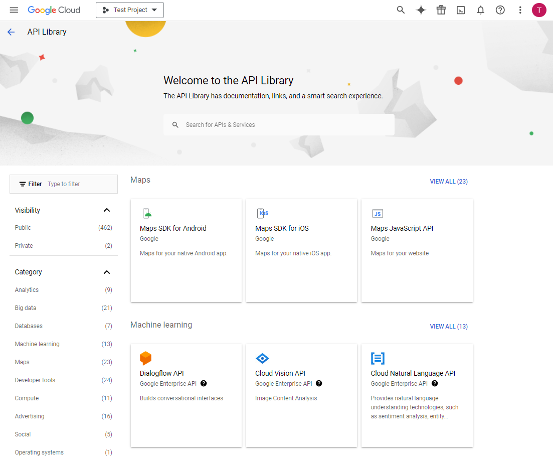 На странице APIs & Services необходимо нажать на кнопку ENABLE APIS AND SERVICES