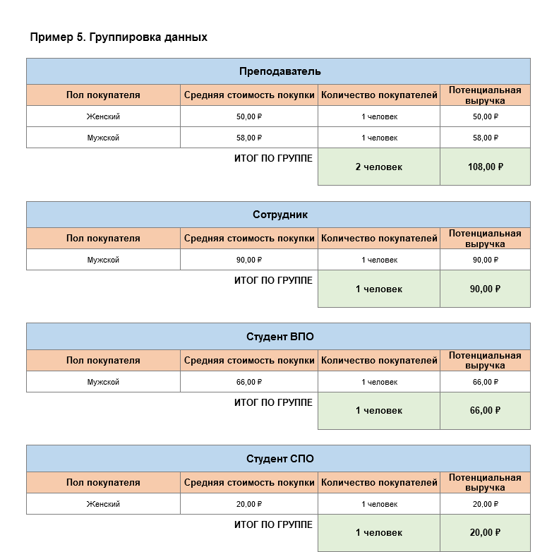 Группировка данных по графе Выражение