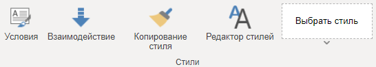 В этой группе располагаются команды управления стилями и условиями компонентов отчетов и элементов панели индикаторов.