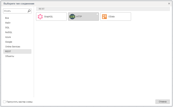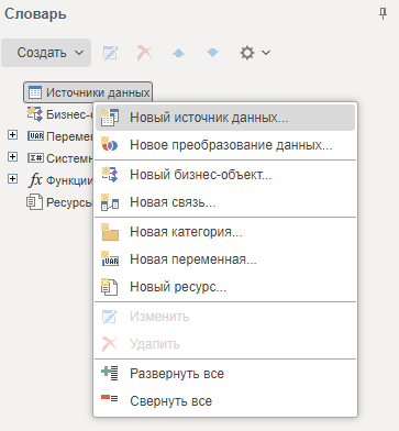 Для создания источника данных данного типа необходимо выполнить следующие шаги: