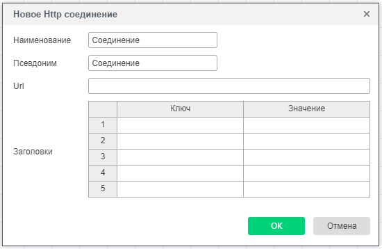 После чего открывается окно с формой Http соединения: