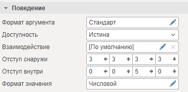 В панели свойств, изменить значения блока Поведение у свойств Отступ снаружи и Отступ внутри.
