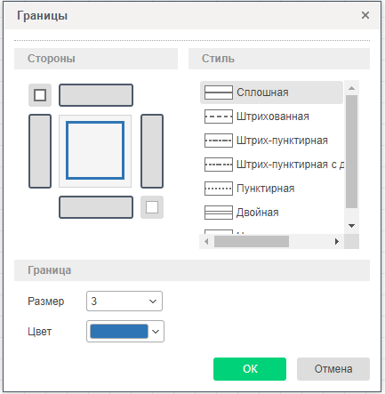 У элементов также можно настроить тип, стороны, размер и цвет границ элемента.