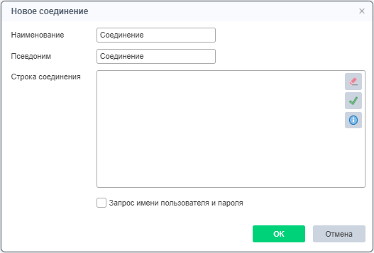 Форма создания нового соединения содержит следующие поля:
