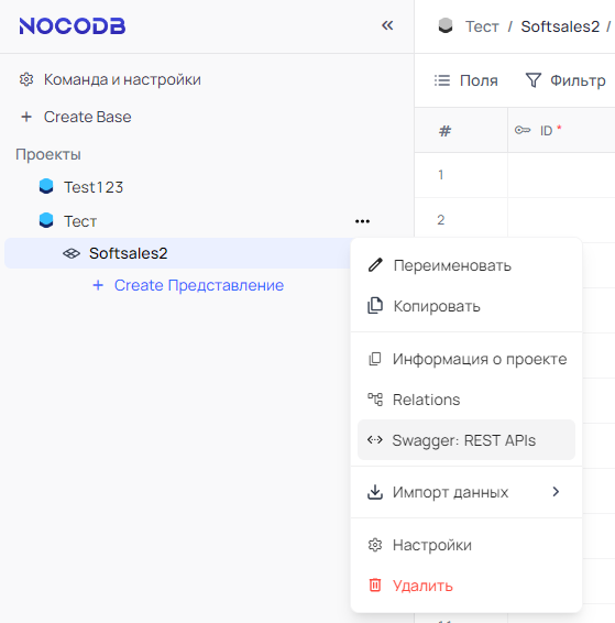 Токен аутентификации - представляет собой авторизационный токен, который позволяет обращаться к API NocoDB