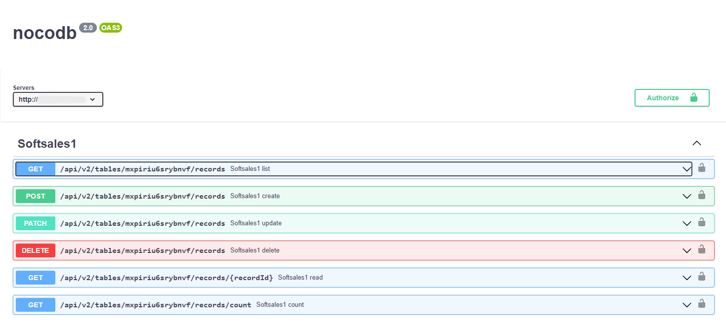 Пример: /api/v1/db/data/v1/pytkpyablft7yb7/Softsales5Csv