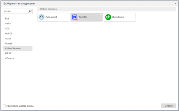 | Info | NocoDb не позволяет получать данные более 1000 строк за 1 запрос. Если В источнике данных больше 1000 строк, то происходит постраничное разбиение и каждая страница последовательно загружается в память отдельным обращением, что существенно сказывается на производительности системы аналитики. В таком случае целесообразно использовать NocoDb для переноса данных в СУБД (например Postgres) и в качестве источника указывать уже базу данных Postgres. |
