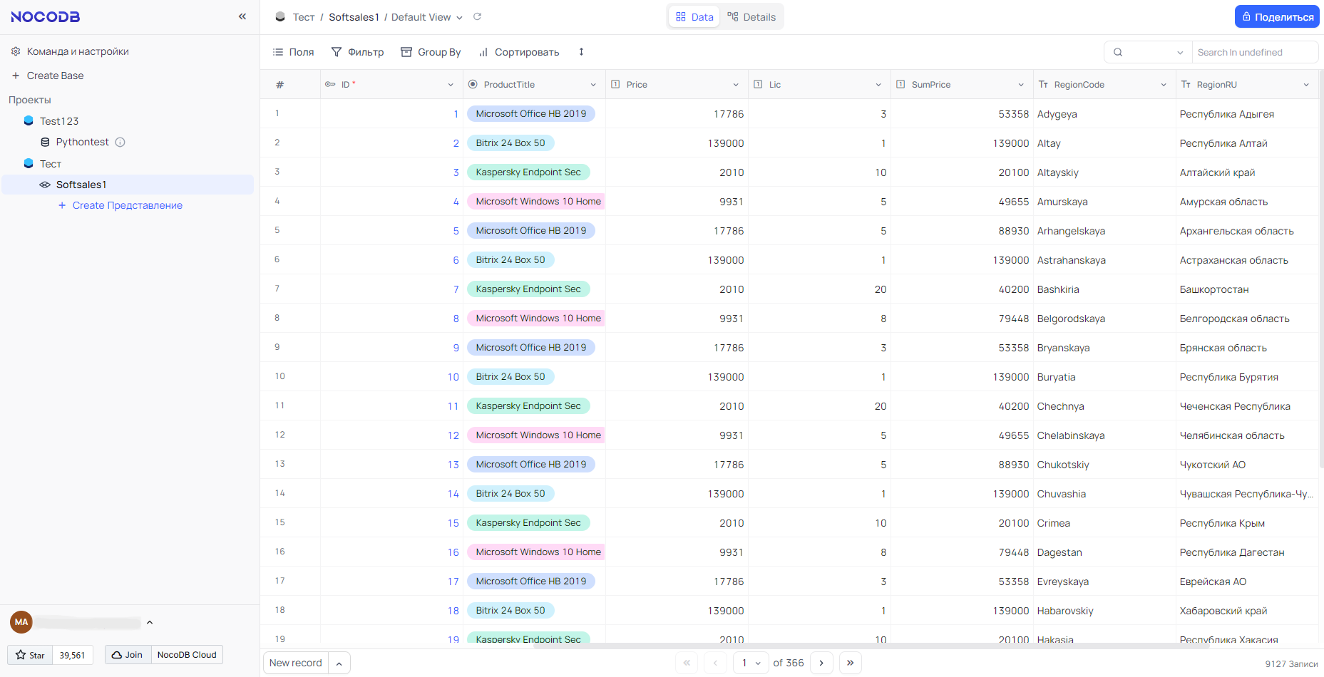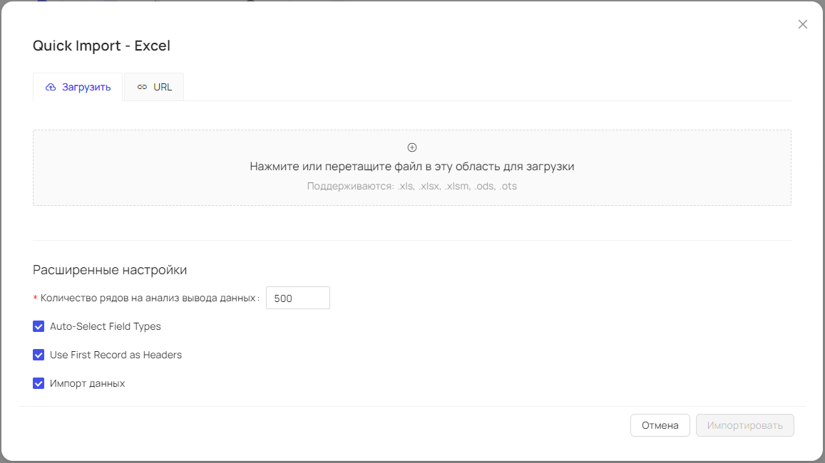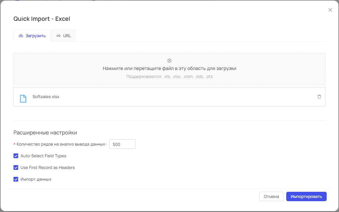 С помощью сервиса NocoDB в Expasys BI реализована возможность работы с файлами различных форматов, в частности Excel.