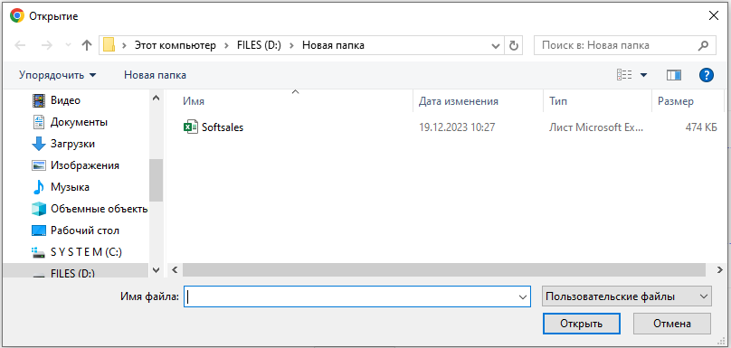 После, во всплывающем окне следует загрузить файл Excel формата, для этого файл следует перенести в предлагаемую область с помощью мыши либо выбрать требуемый файл с помощью файловой системы Windows