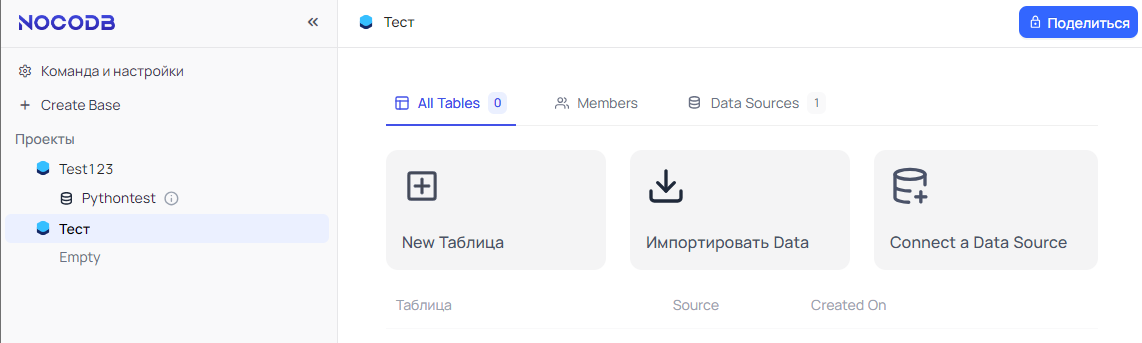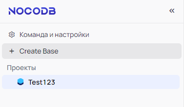 Для создания нового проекта на панели слева выбрать элемент Create Base:
