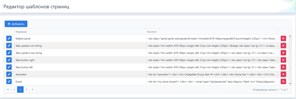 Управление шаблонами страниц