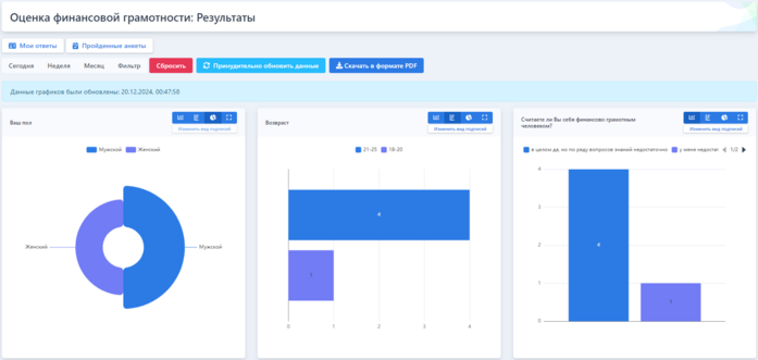 Согласно настройкам к каждому опросу, может публиковаться ссылка на Результаты в виде диаграмм