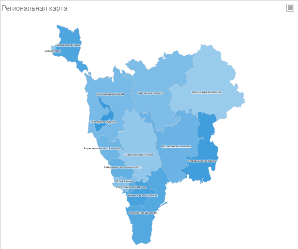 В региональной карте можно отобразить какое-либо значение, с привязкой к определенному географическом объекту. Список географических объектов зависит от выбранного вида карты.