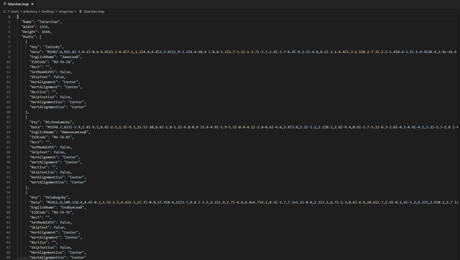 Массив Paths - данные географических объектов карты.