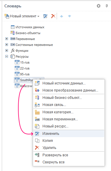 Каждую добавленную карту в ресурсы отчета можно отредактировать.