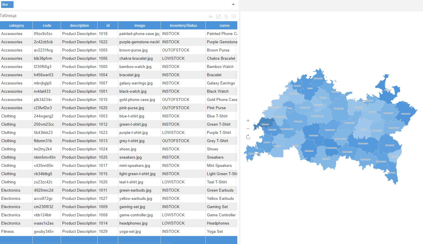 Региональная карта с таблицей данных