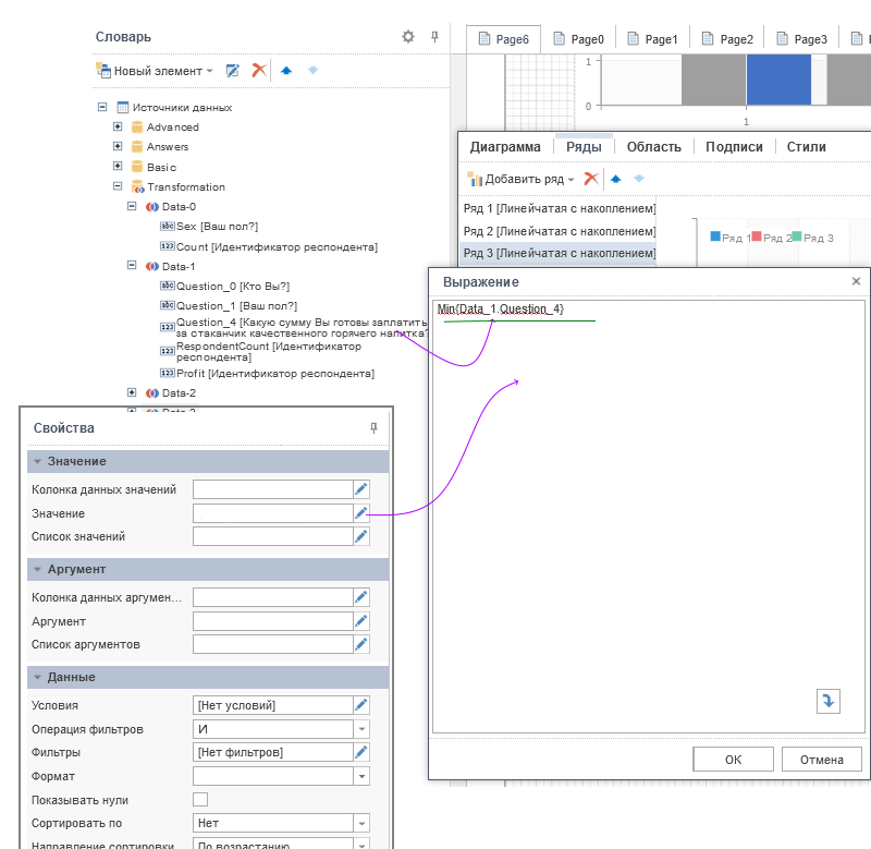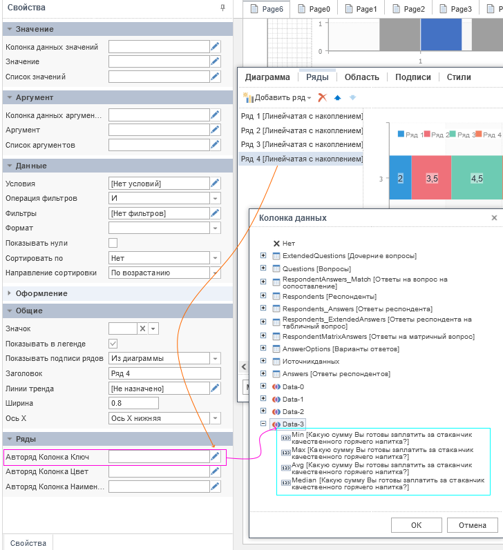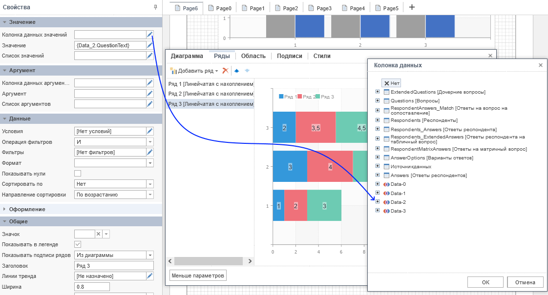 Настройка рядов, как и самой диаграммы осуществляется в редакторе компонента с помощью панели Свойства.