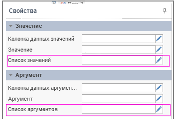 В пункте Значение выбрать данные для Колонки данных значений и Колонки данных аргументов.