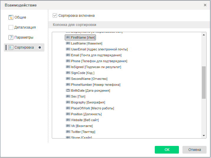 Взаимодействие является инструментом построения интерактивного отчета.