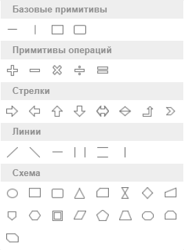 Примитивы Геометрические примитивы предоставляют возможность визуального оформления отчетов. К примитивам относятся: Базовые примитивы; Примитивы операций; Стрелки; Линии; Схемы;