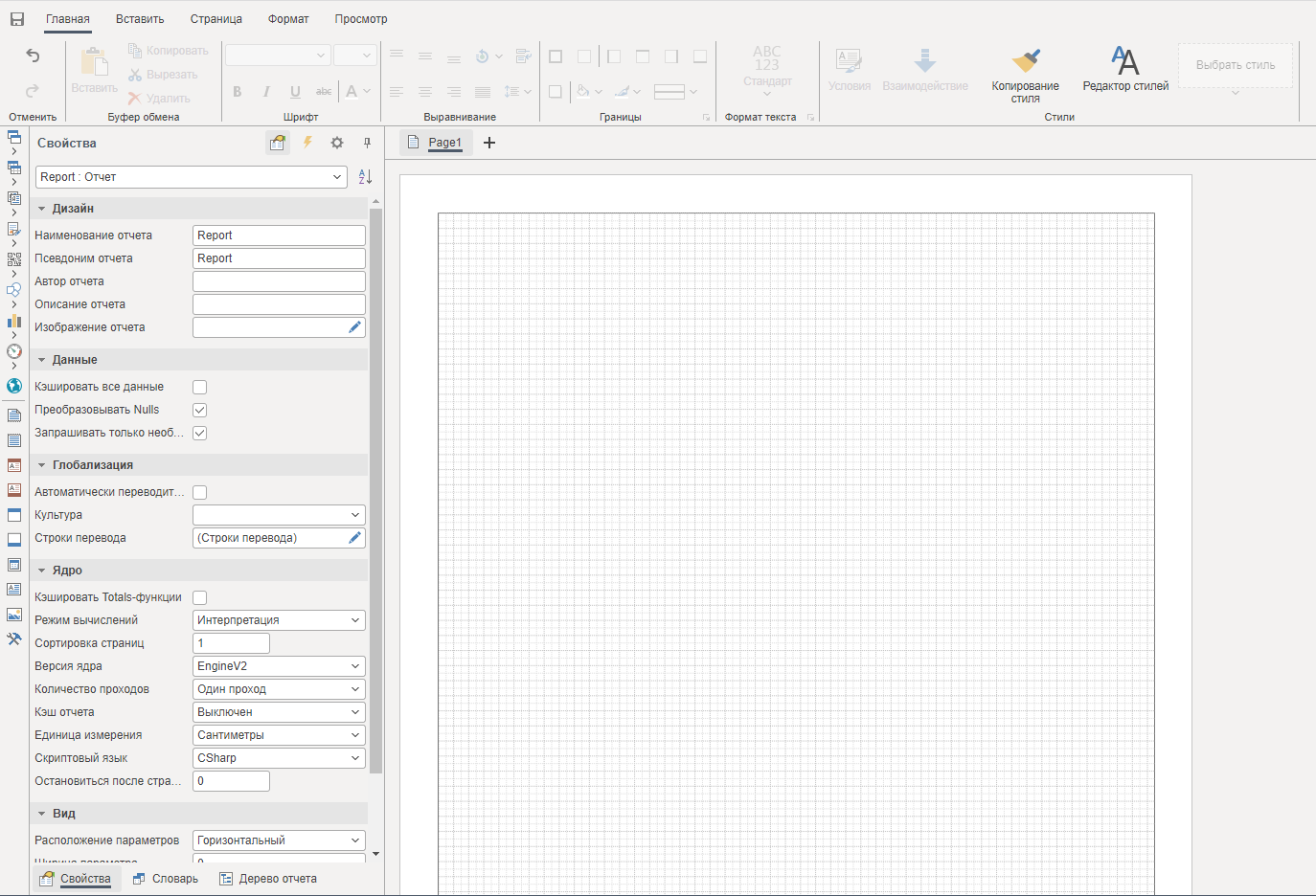 Свойства отчета.