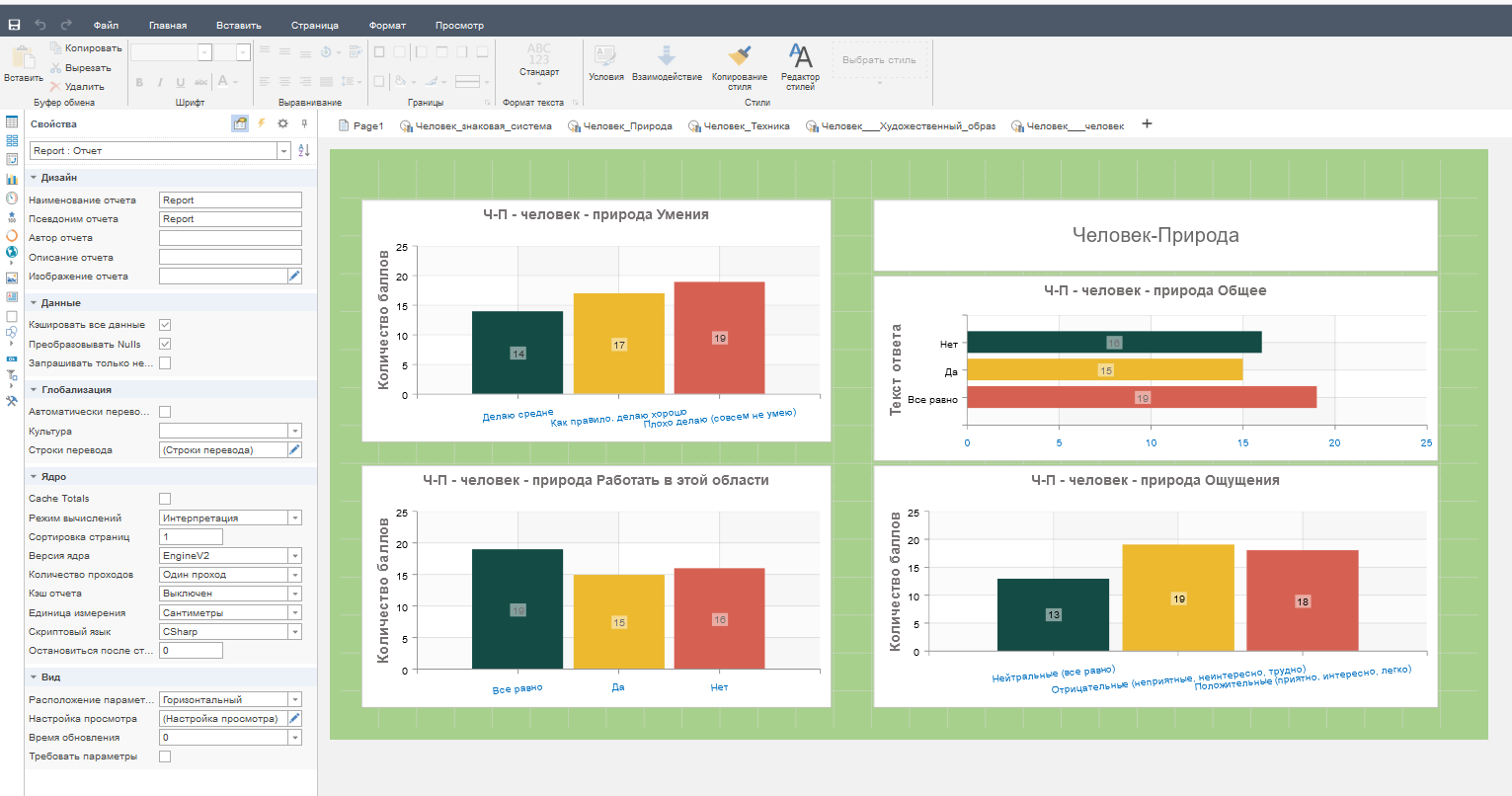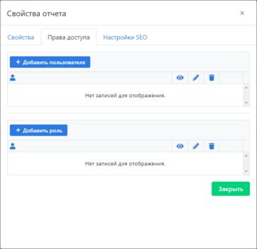 Вкладка «Аналитика». Настройки аналитических отчетов, свойства отчетов