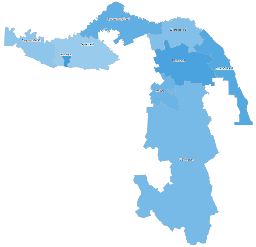 В таблице ниже представлен список районов для данного региона Российской Федерации, их автоматическое наименование, ключ, а так же ИСО+ОКАТО код: