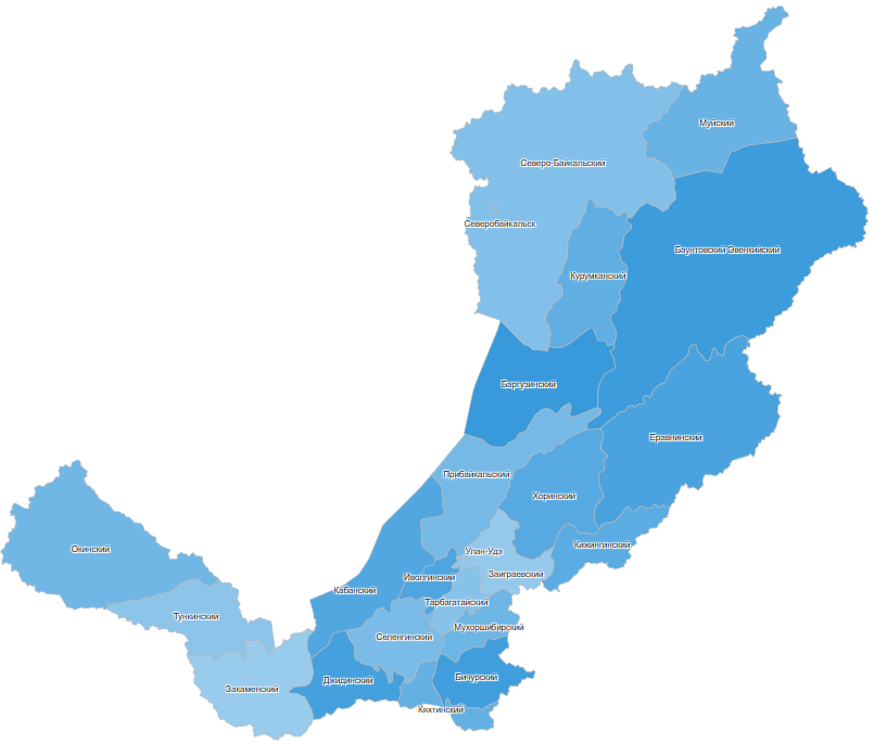 В таблице ниже представлен список районов для данного региона Российской Федерации, их автоматическое наименование, ключ, а так же ИСО+ОКАТО код: