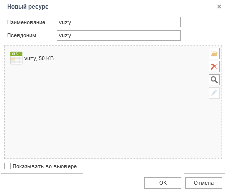 предоставляет возможность отображать встроенный файл на панели ресурсов во вьювере.