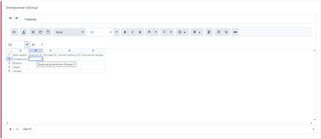 Добавление валидации на ячейку