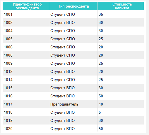 Группировка данных в таблице