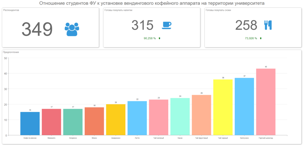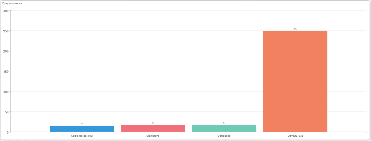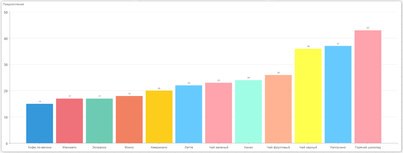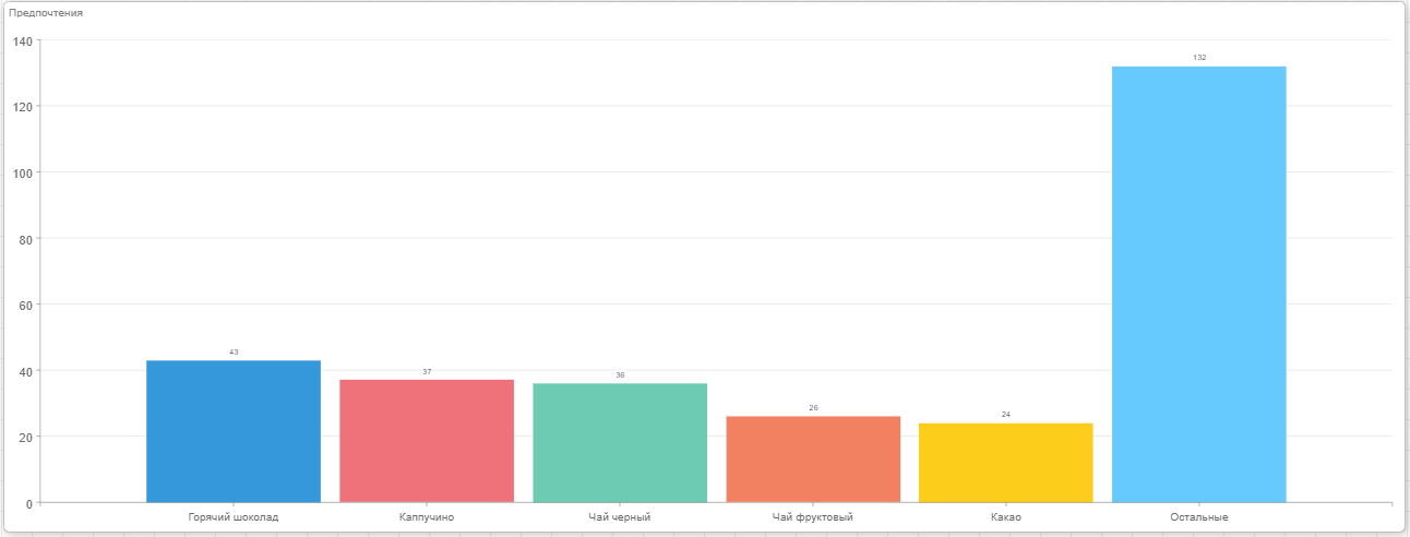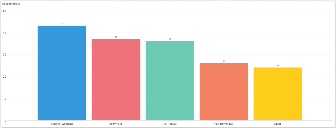 Допустим на панели индикаторов, отображается диаграмма со списком напитков, которые предпочитают респонденты