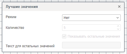 Если параметр Показывать остальные значения включен, то все значения, которые не попали в список лучших значений, будут просуммированы и отображены как отдельное значение.
