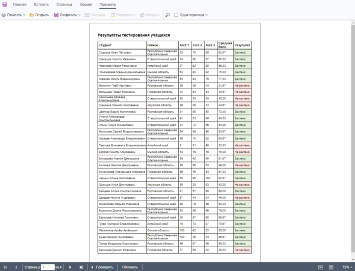 Дизайнер отчетов позволяет выполнить просмотр отчета перед печатью, экспортом, отправкой либо другим каким-либо действием, для того чтобы выявить возможные ошибки, недочеты.