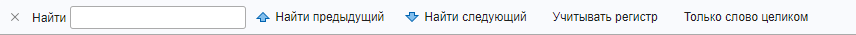 Для включения режима поиска в окне отчета используется кнопка на основной панели инструментов с изображением бинокля. Все элементы управления поиском собраны на одной панели инструментов.